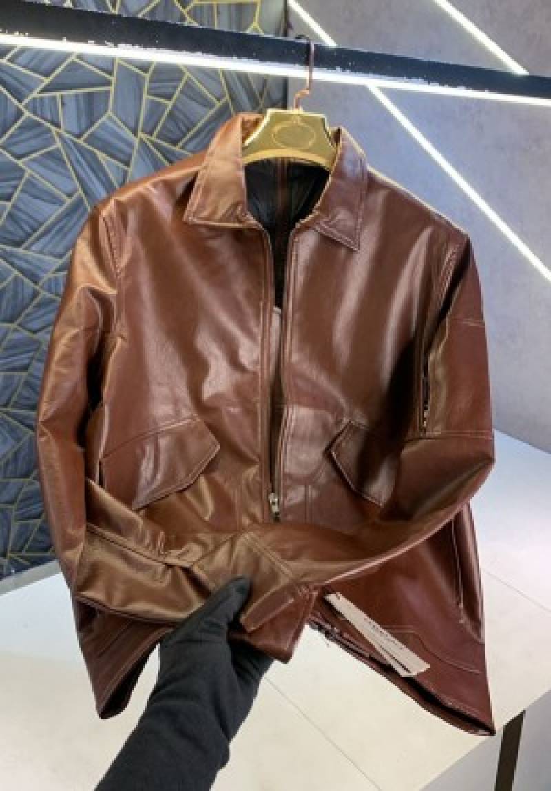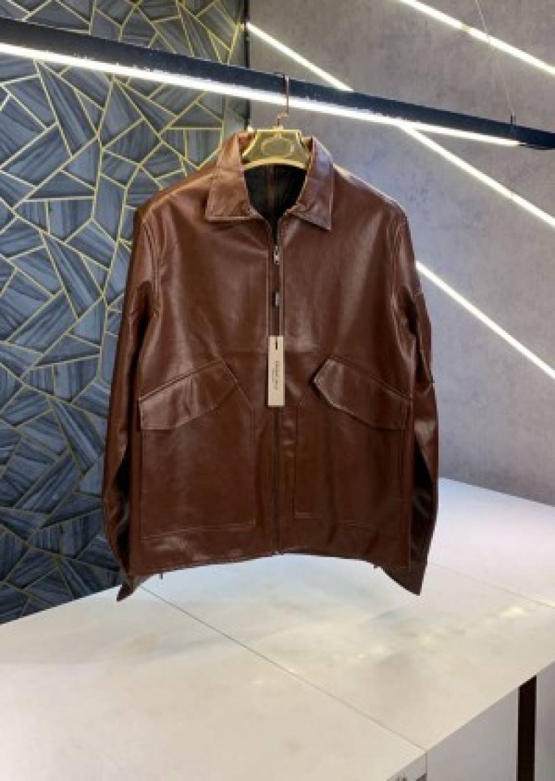 sale_Essential Fear of God Brown Imported Designer Leather jacket (1247)