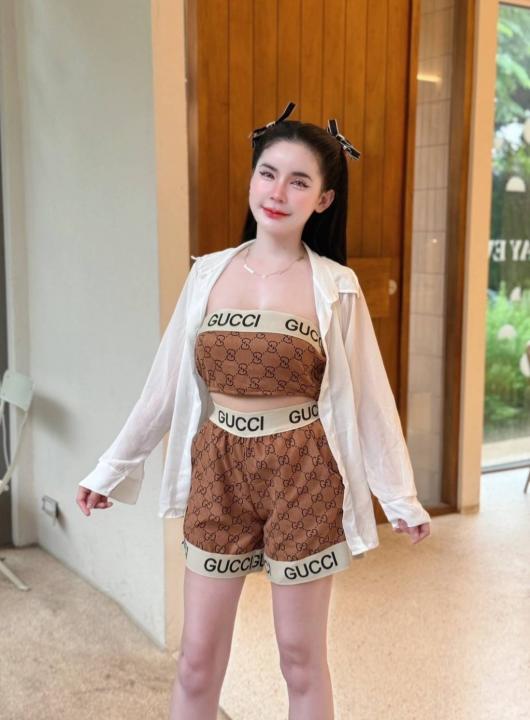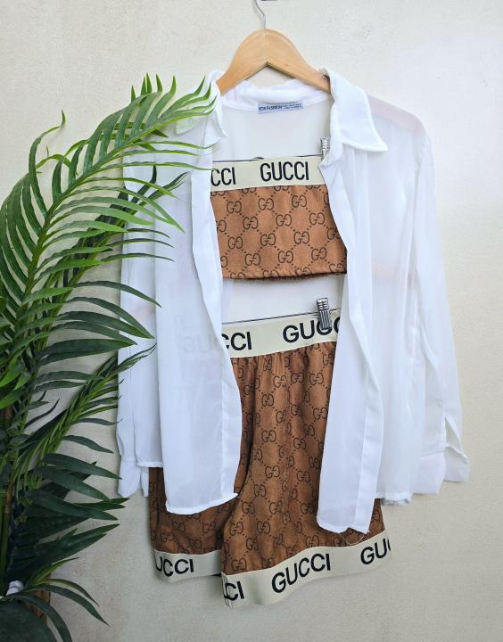Guci WOMENS SHRAG SHORTS SET BROWN SB108-BRW-F