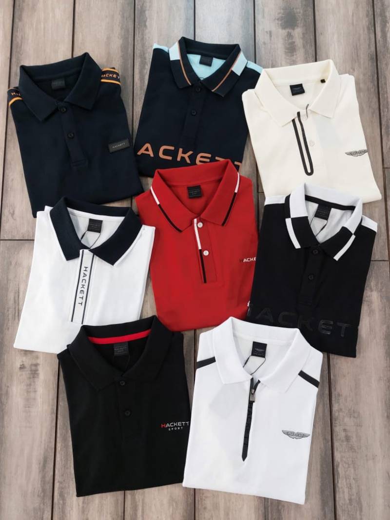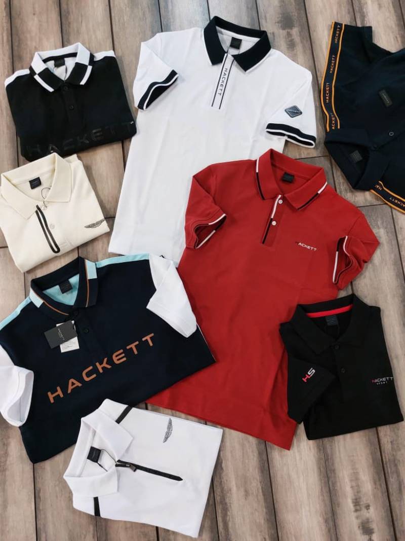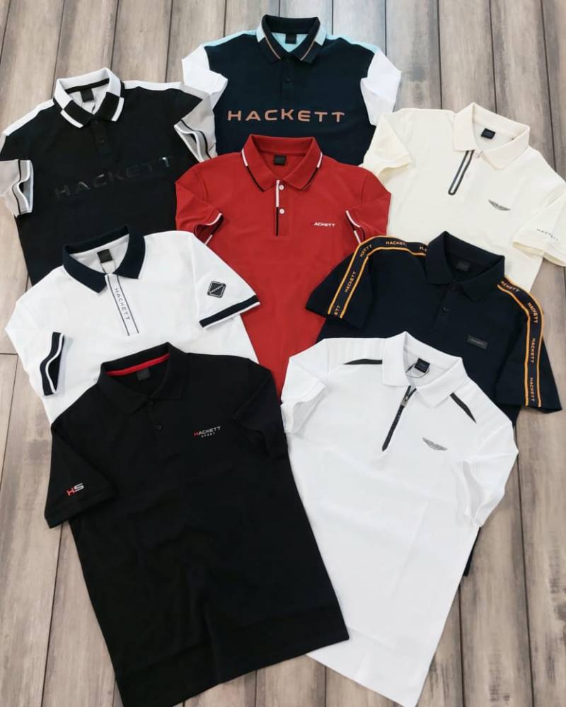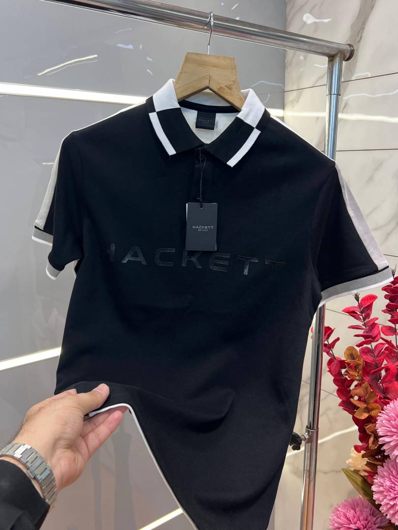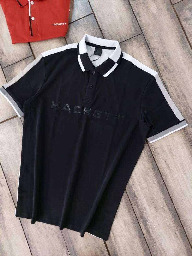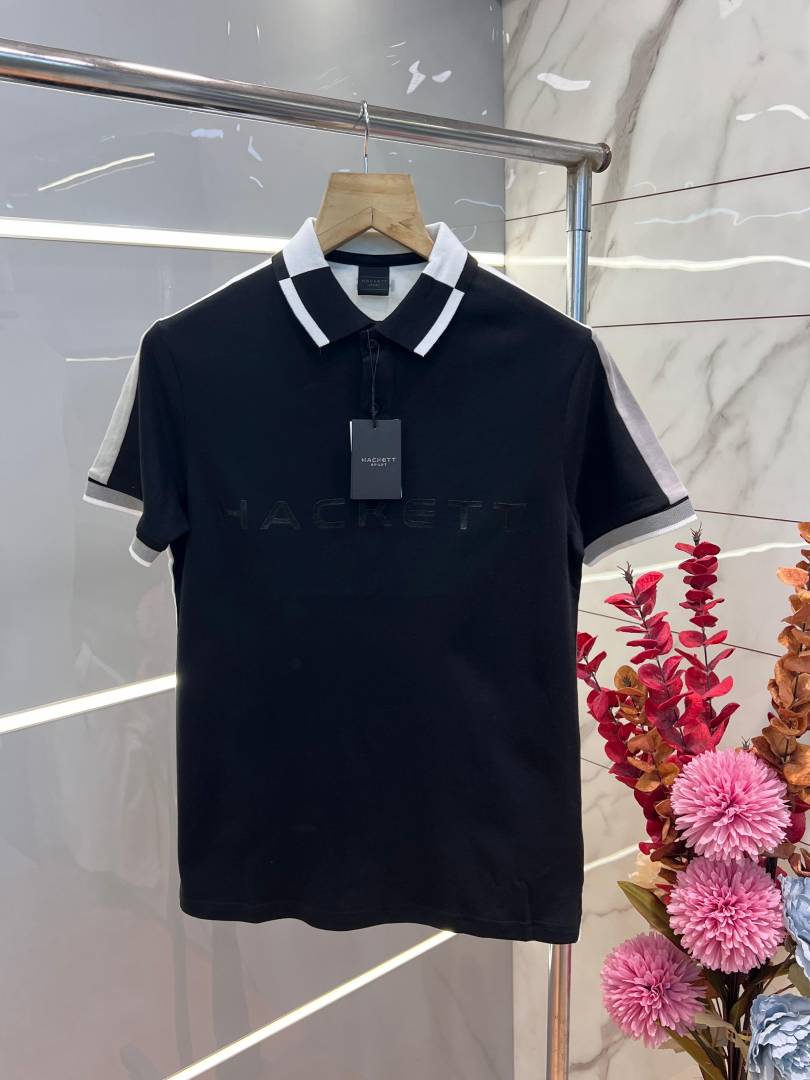Hacke t Black Premium 240 gsm interlock compact cotton fabric Polo Tshirt with Shoulder Design and Emboss Logo 3438