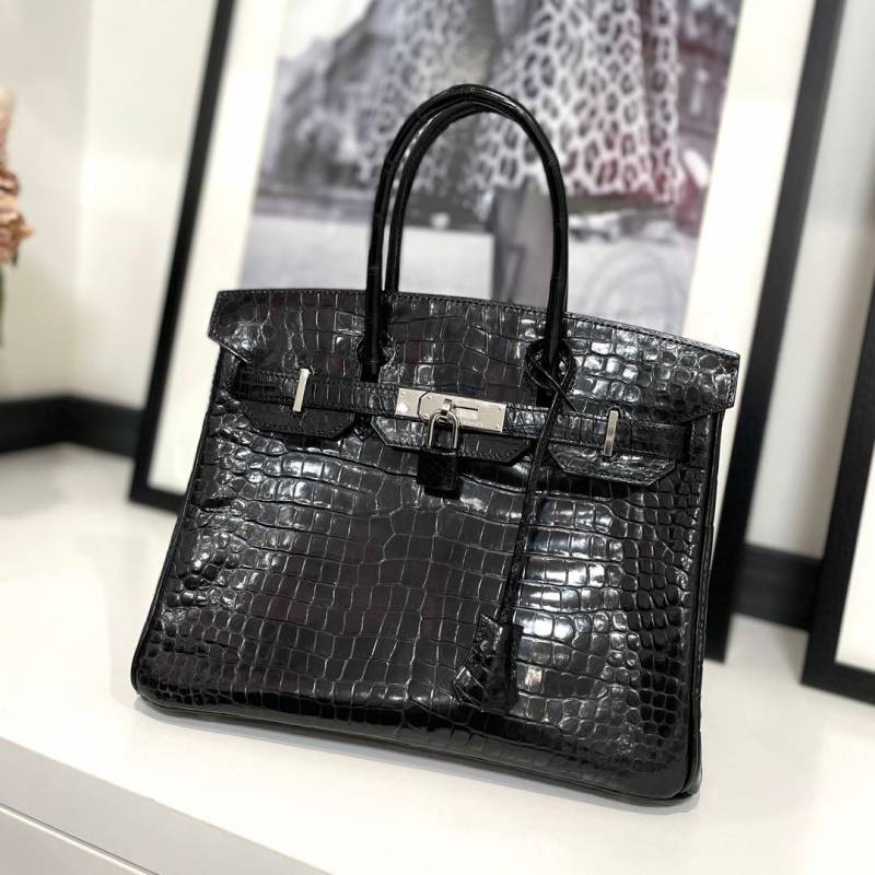 Hermes_ Birkin Handbag in Shiny Crocodile Leather Bag with Dust Cover premium quality