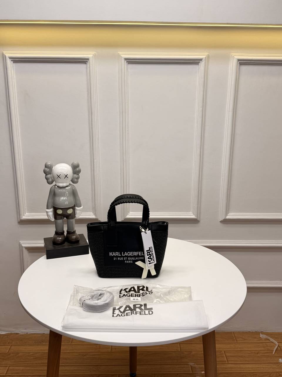 Karl Lagerfeld Small Rue st-guillaume raffia Leather Totebag with dustbag tags etc 244
