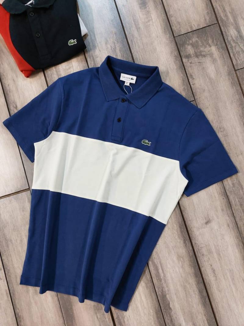 Lacost e Inkblue Premium Cotton Pique fabric Polo Tshirt with Front Design and Embroidered Logo 3548