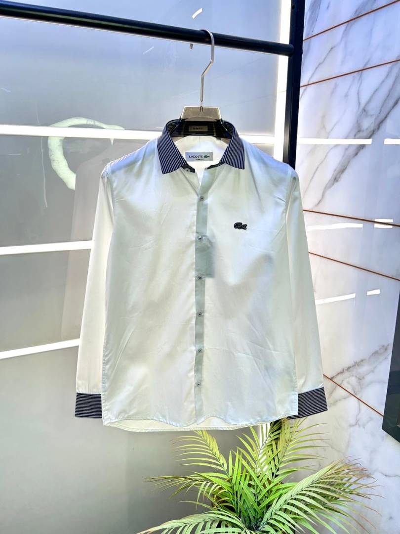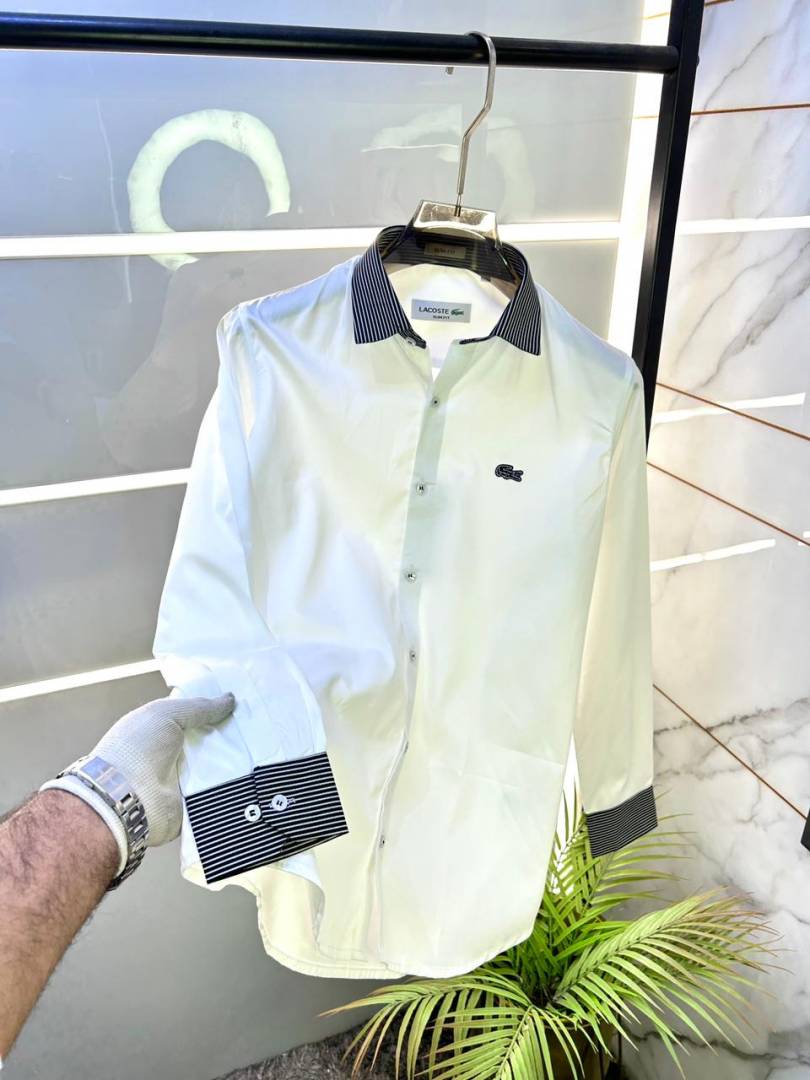 Lacost e white embroidery logo imported shirt with brand button