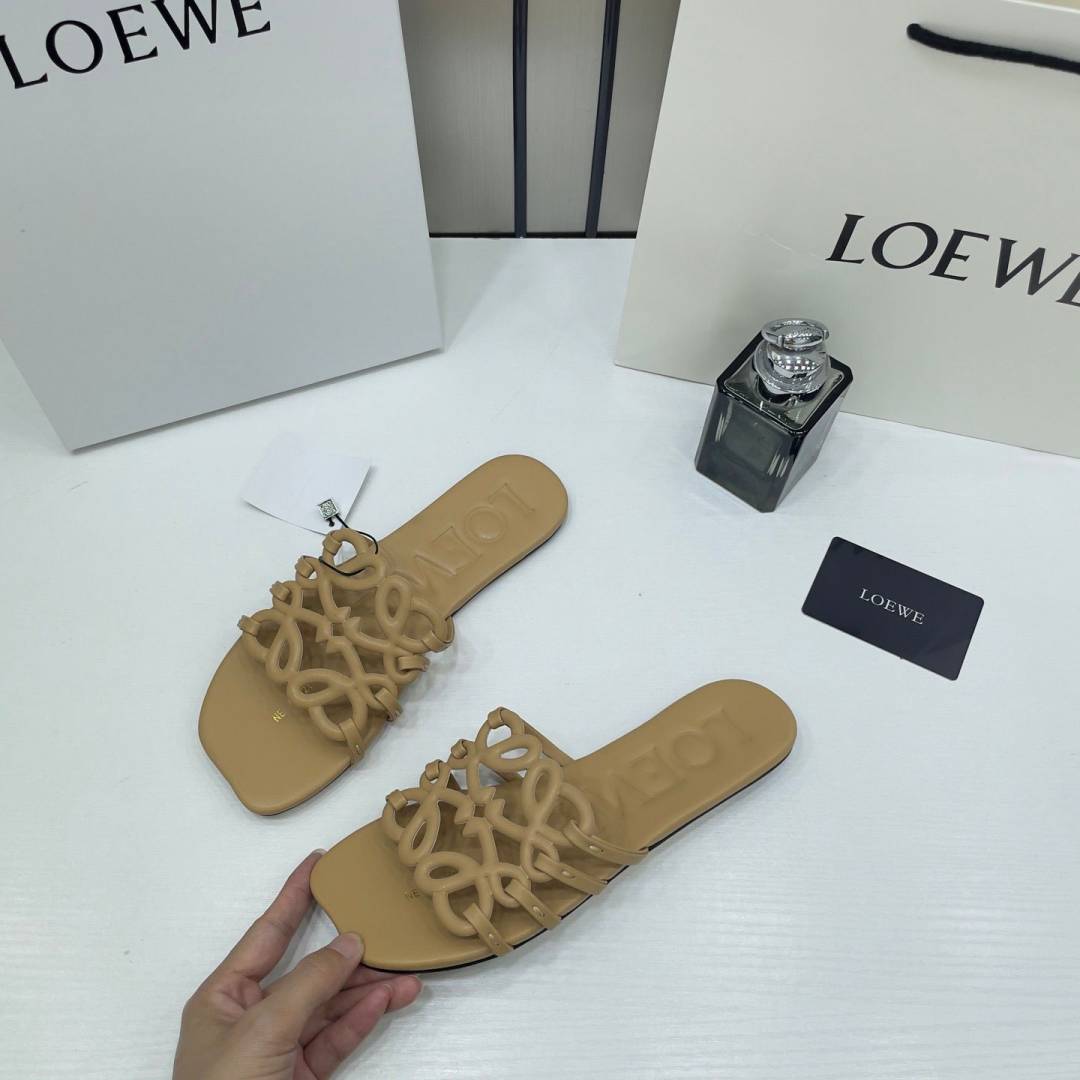 Loewe Petal Anagram Tan Beige Slides For Women With Original Box And Dust Cover Tan Beige 2506