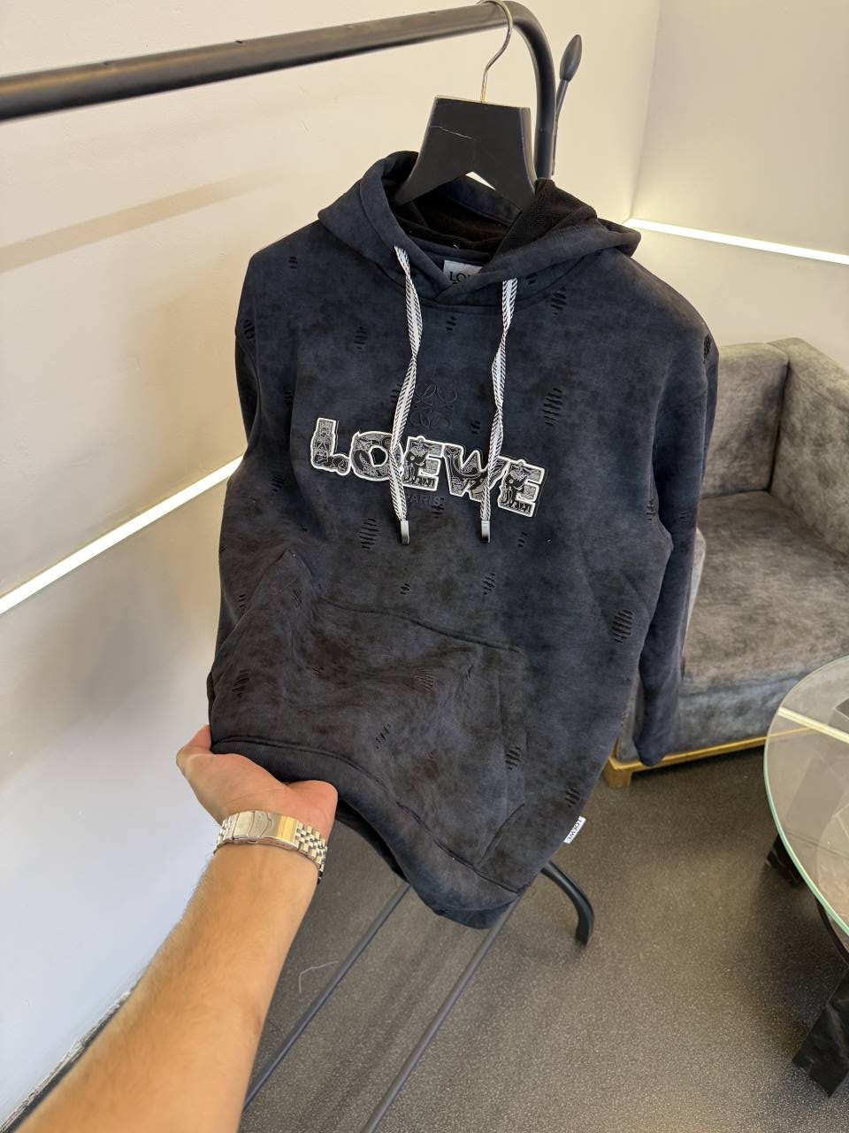 ? *Loewe imported shadow print cut work imported hoodie with inside fleece and branding in front now in stock*?