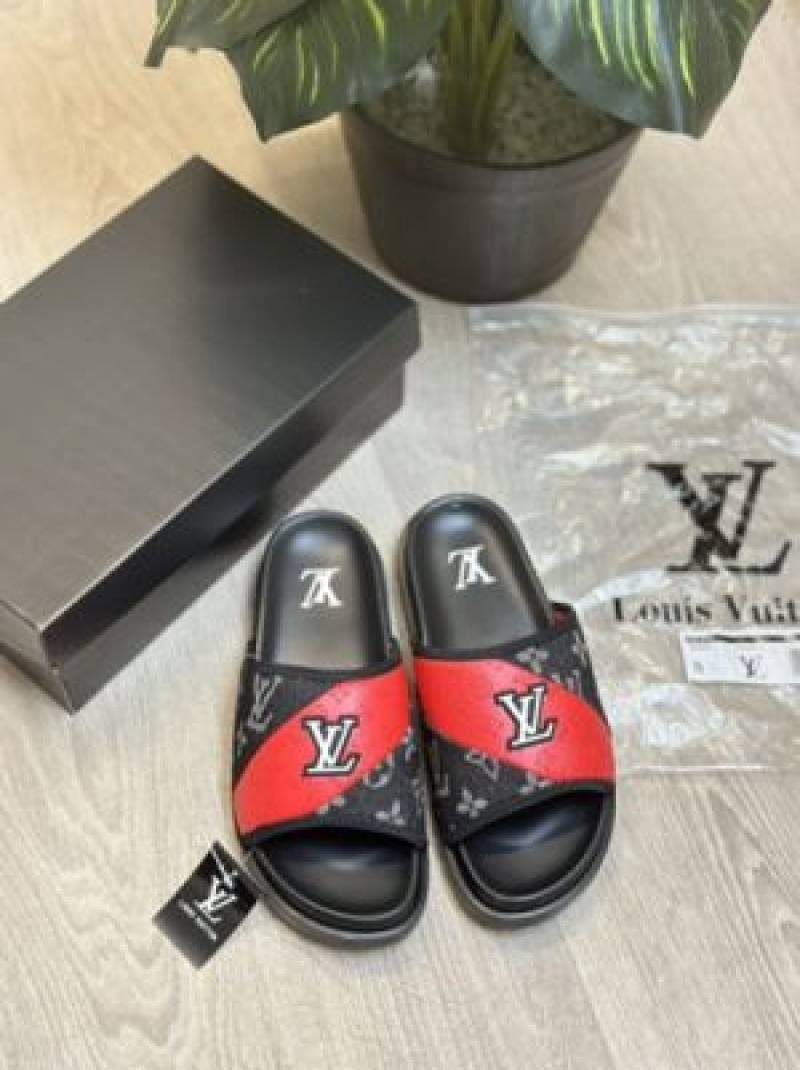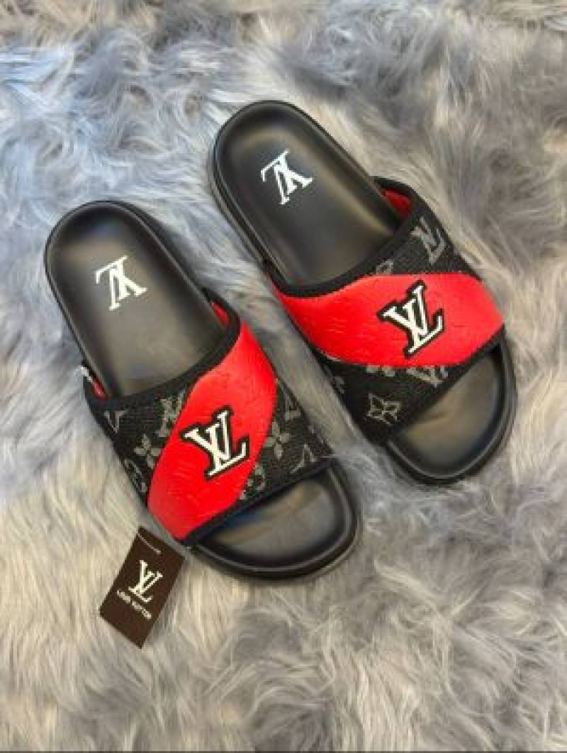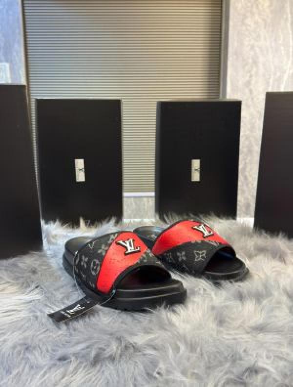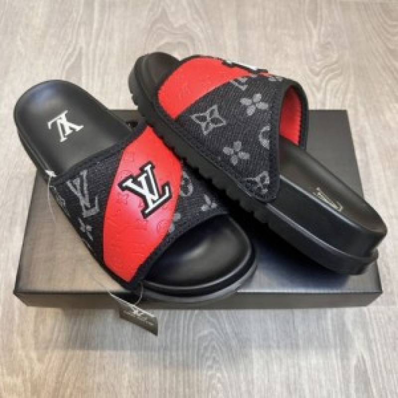 Louis-Vuitton Monogram Blue White Black Premium Slides