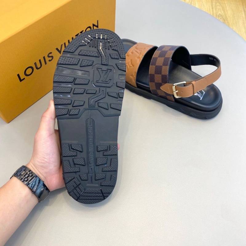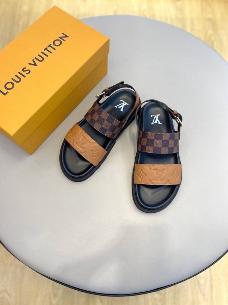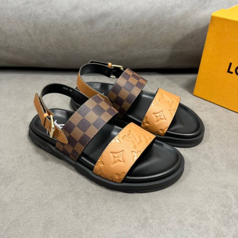 LOUIS_VUITTON_MONOGRAM_EMBOSSED_COWHIDE_STRAP_AND_UNIQUE_PLAID_PATTERN_SANDAL