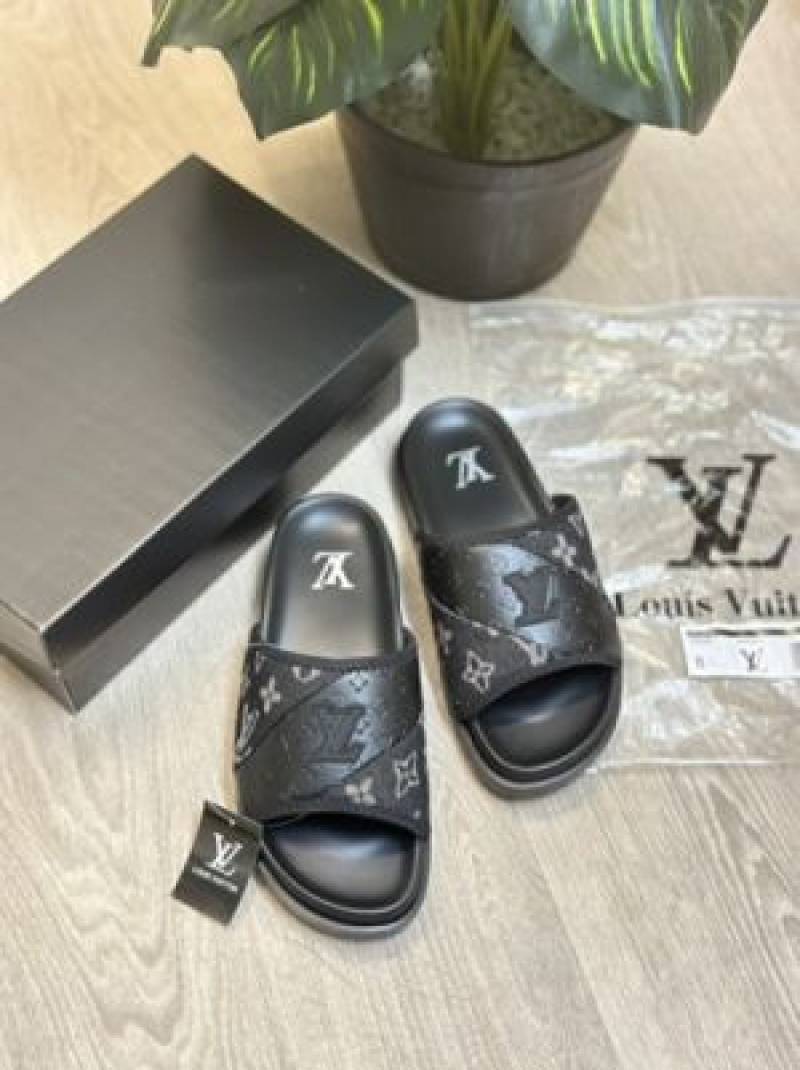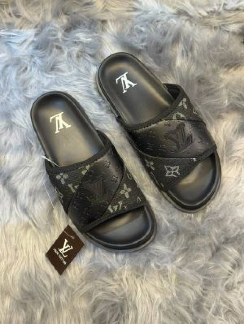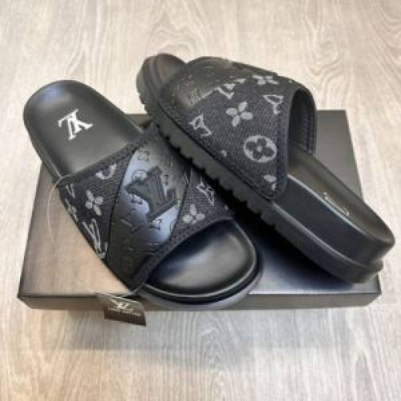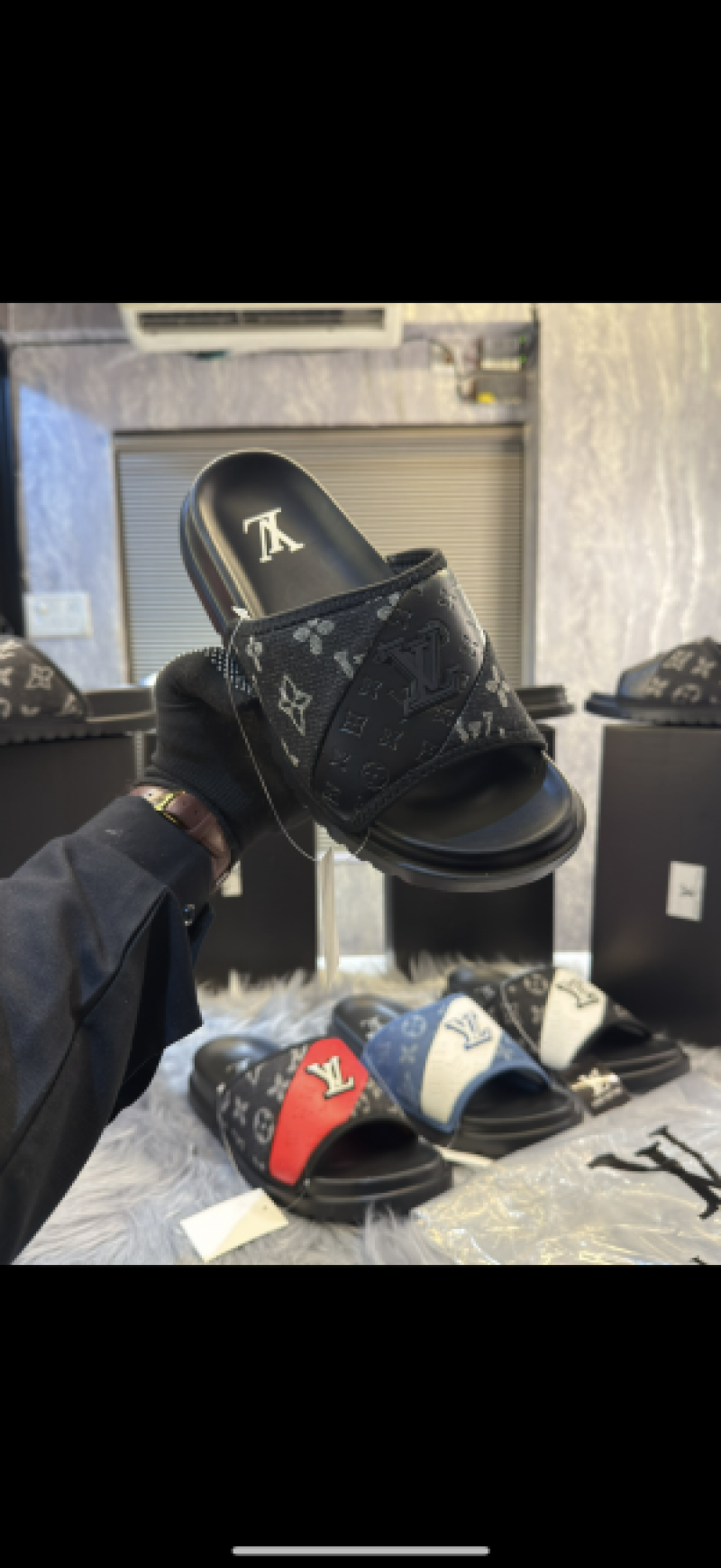 Louis-Vuitton Monogram Blue White Black Premium Slides