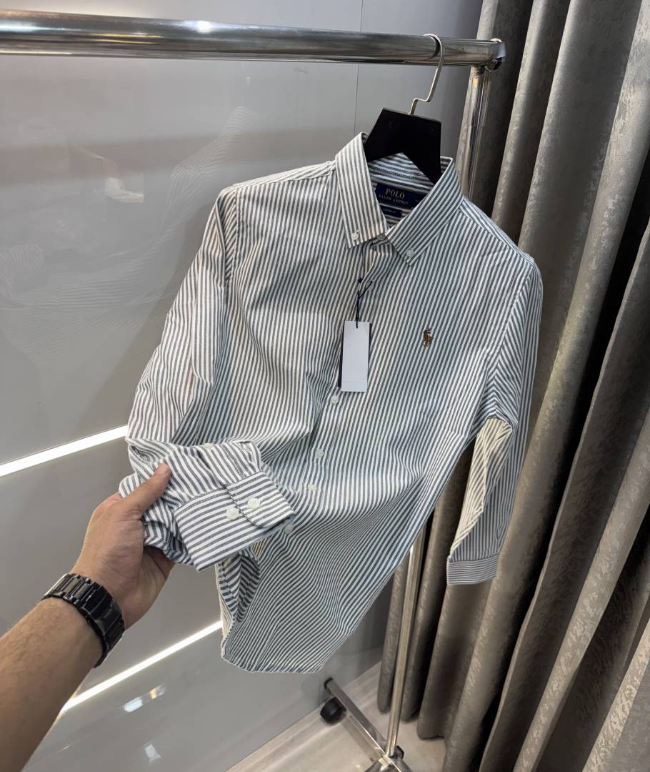 Ralph Lauren LIght Grey Stripes Premium Oxford Shirt