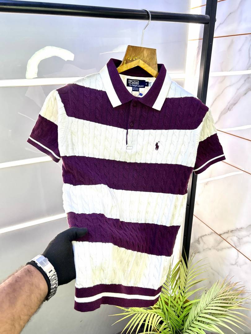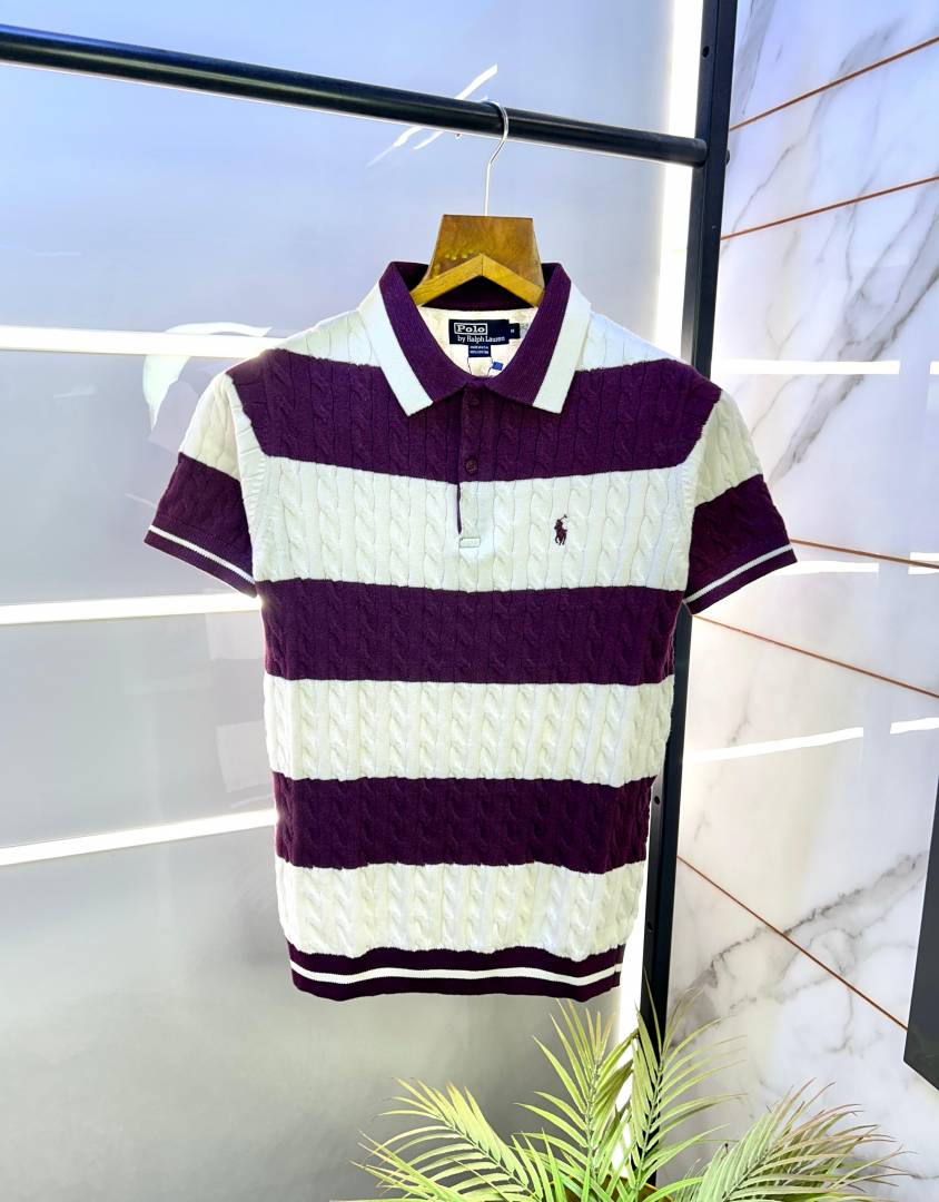 Ralph_Lauren Purple Imported Knitted Polo Collar Neck T-shirt F2805-PU