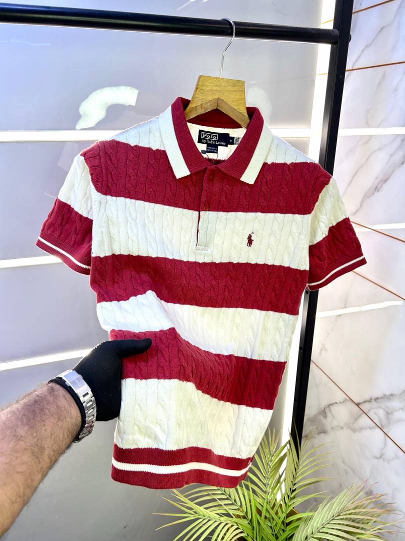 Ralph_Lauren Red Imported Knitted Polo Collar Neck T-shirt F2805-RE
