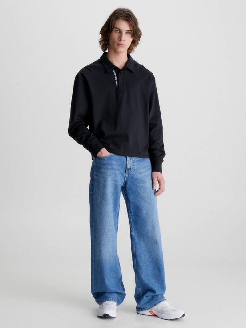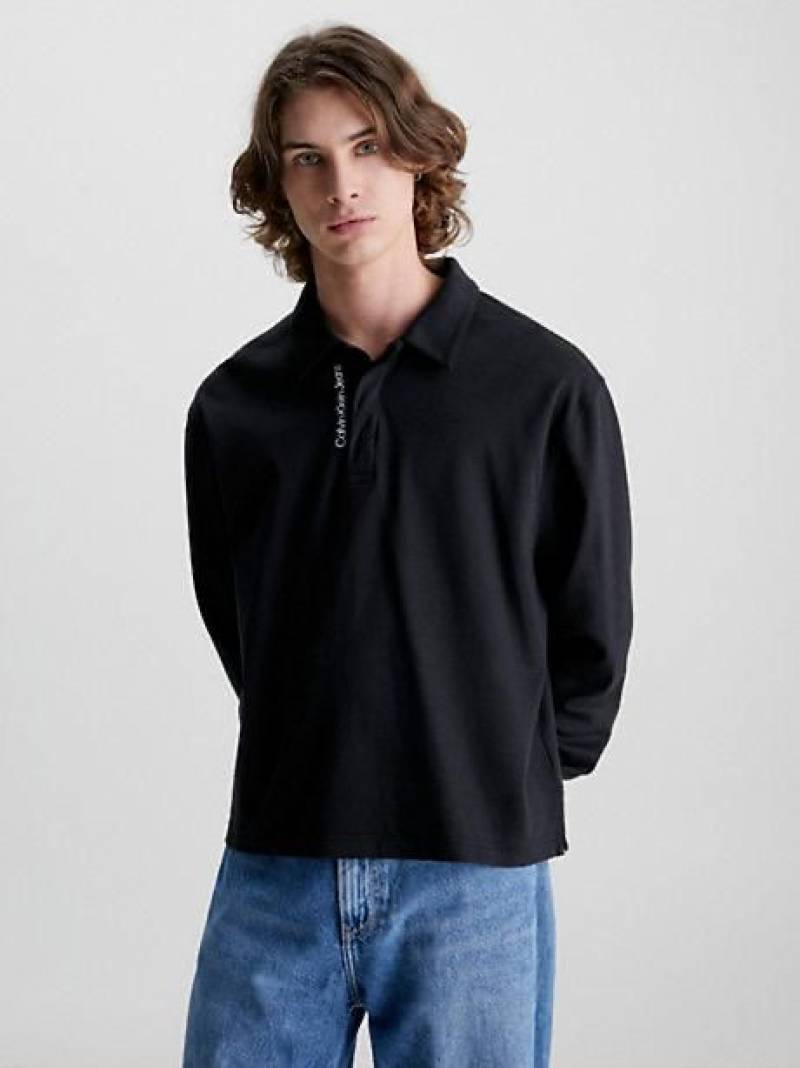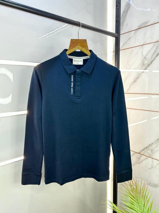 Sale Calvin_Klein Navy Full Sleeves Polo Neck Premium Collar T-shirt 077