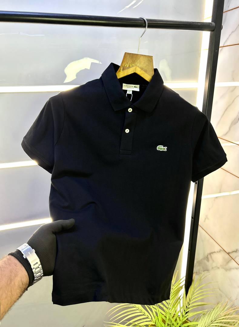 Sale Lacost e Black Polo Premium Collar Neck T-shirt F2697-BL