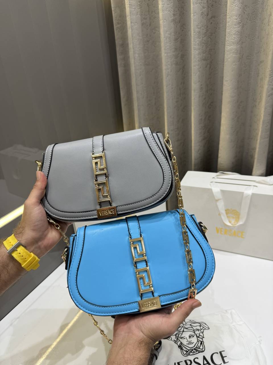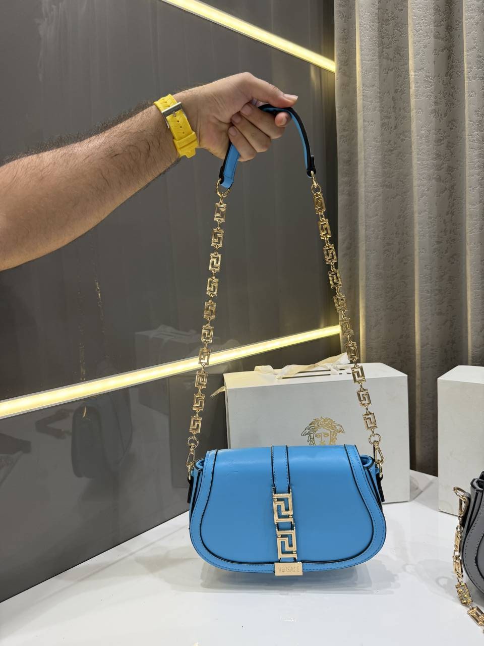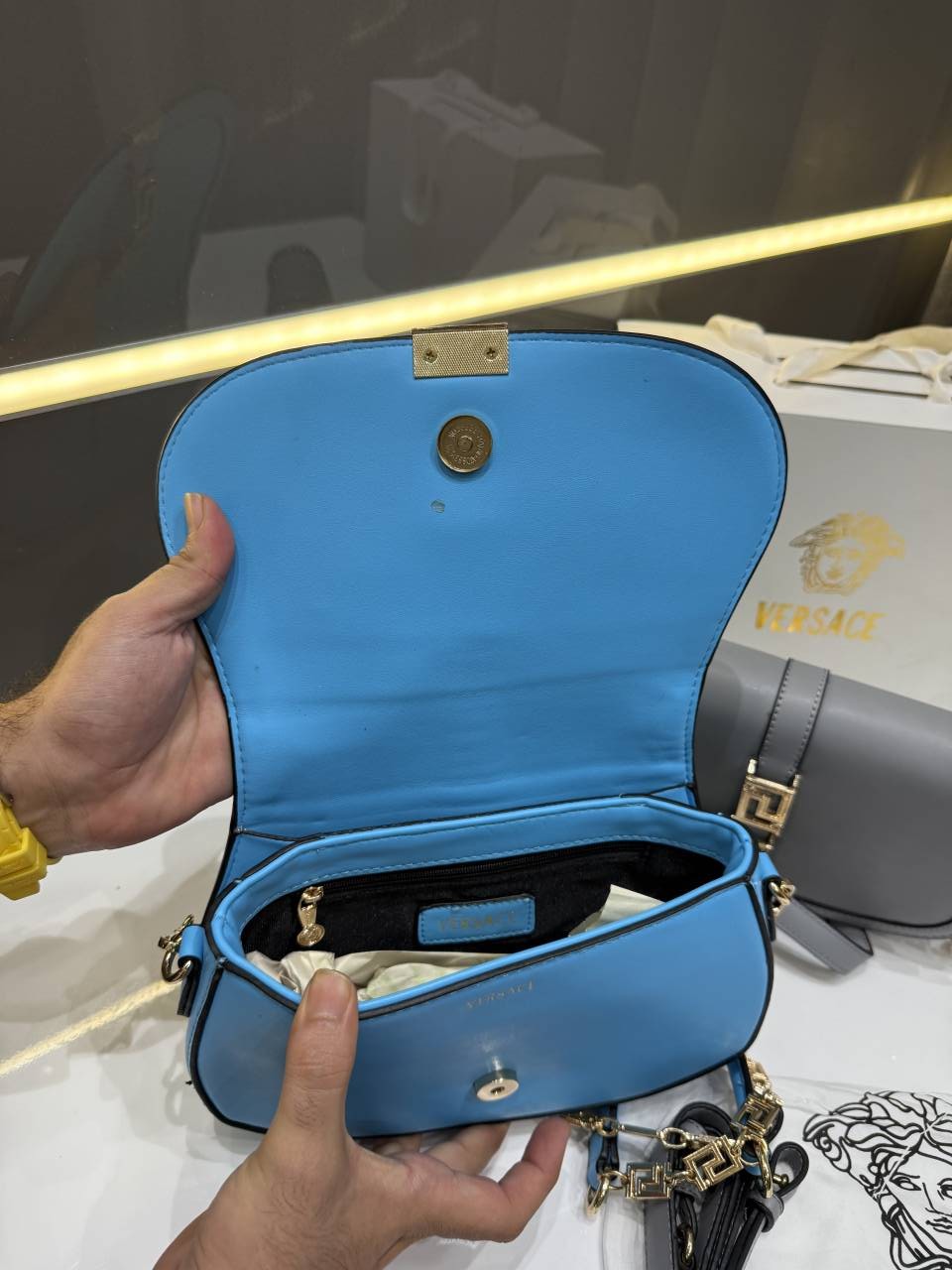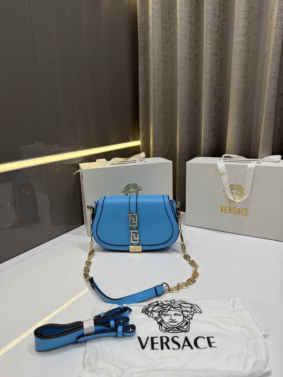 SALE VERSAC.E GRECA GODDESS BLUE PREMIUM SHOULDER BAG WITH OG GIFT BOX