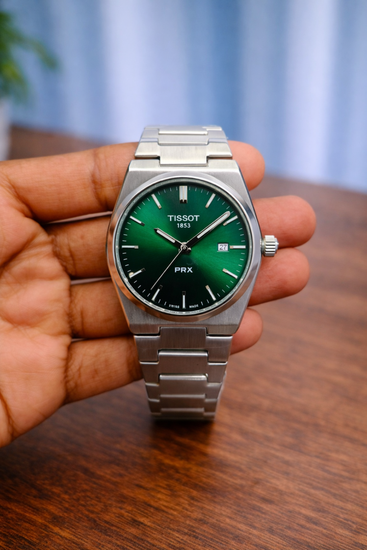 TISSOT PRX QUARTZ SILVER GREEN PLANE DIAL