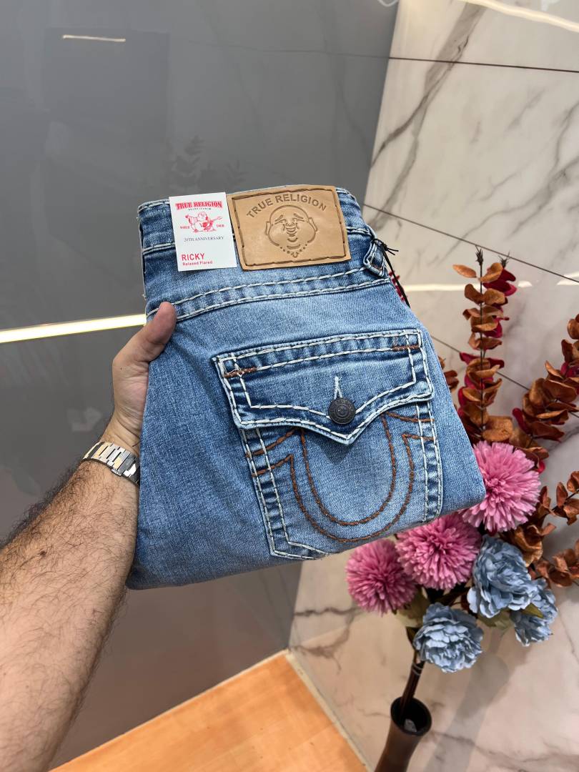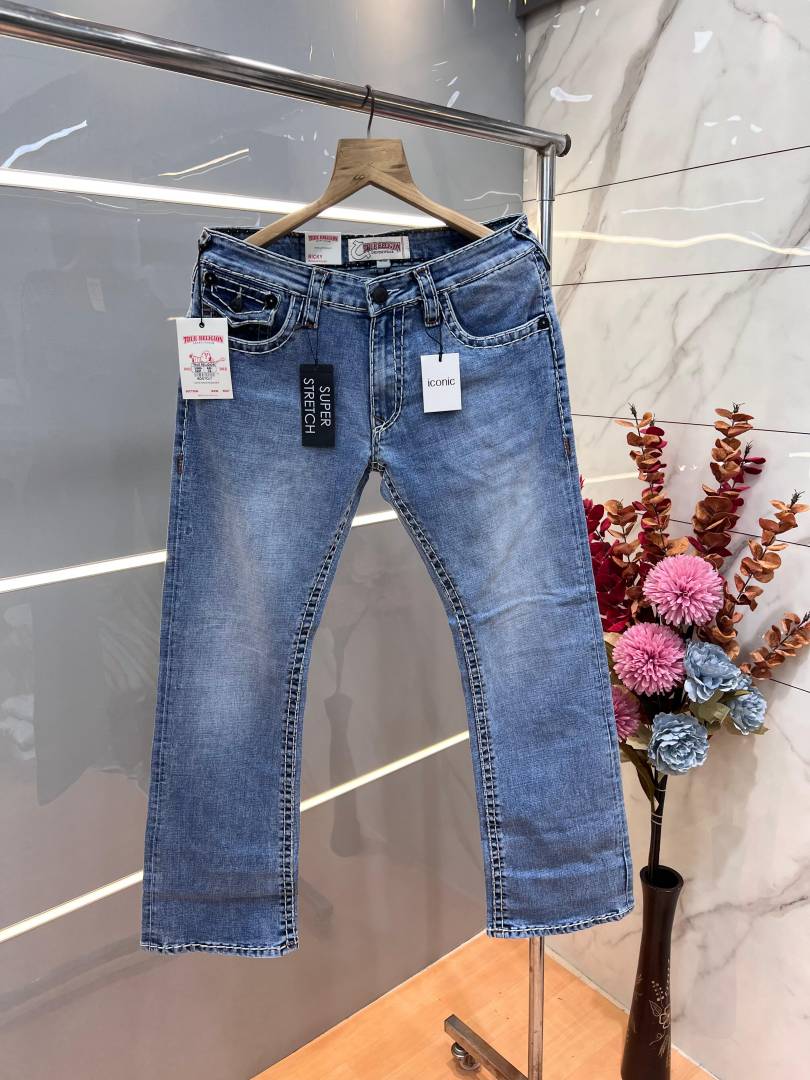 True Religio n Blue Shade Premium Imported Stretchable Lycra Fabric Boot Cut Denim with Back Flap pocket Design 3146