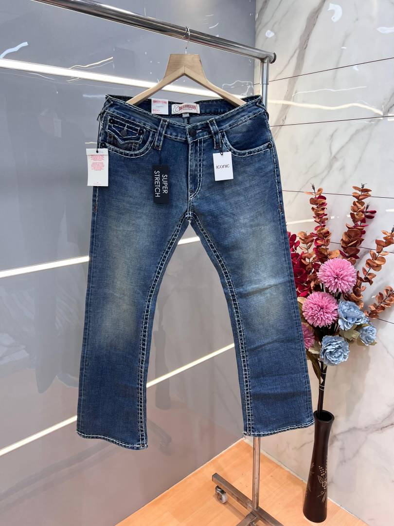 True Religio n Blue Shade Premium Imported Stretchable Lycra Fabric Boot Cut Denim with Back Flap pocket Design 3146