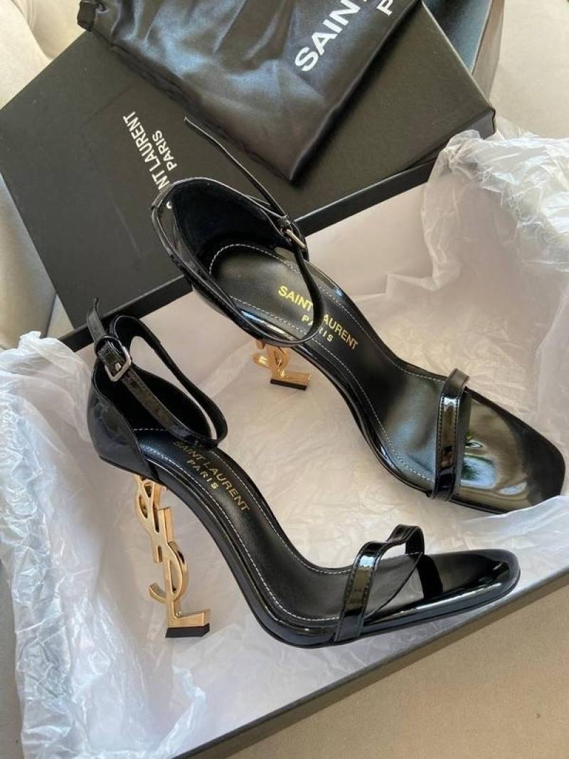 YSL Saint Laurent Opyum Heels With OG Box & Carry Bag (Black Gold - 868)